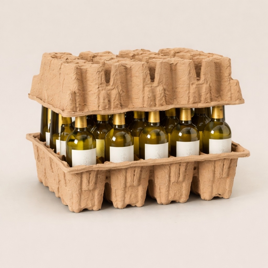 1. 紙漿成型製品(環保包材)可製成玻璃瓶保護紙托,可用於玻璃瓶固定托盤、玻璃藥品包裝、玻璃運輸包裝等包裝方式。