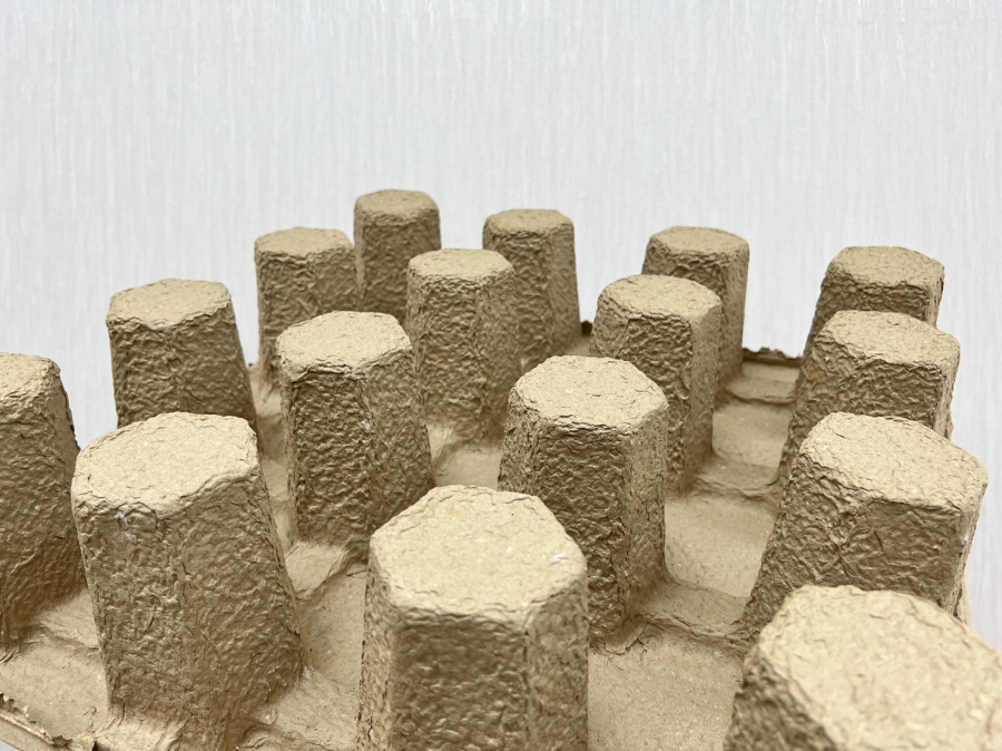 1. 透水環保紙塑植草磚可取代傳統水泥製植草磚,磚樣變化多,可有效保護草皮,改善完工後的積水狀況。 2. 紙塑植草磚經過長時間的分解即回歸大自然,不會對環境造成影響。 3. 紙漿成型製品多為客製化產品,如有相關設計需求歡迎洽詢。